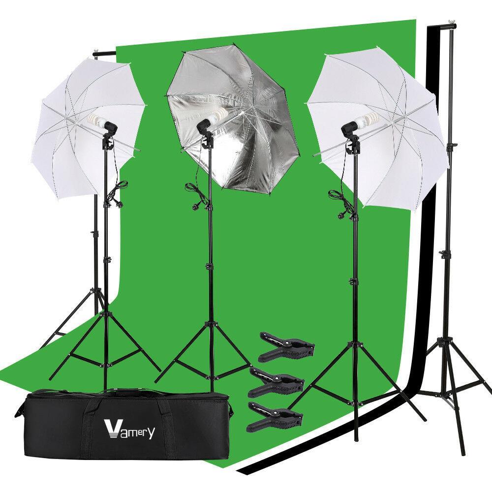 Vamery Continuos Lighting Black White Green Screen Umbrella Light Stand Kit Uk Ebay