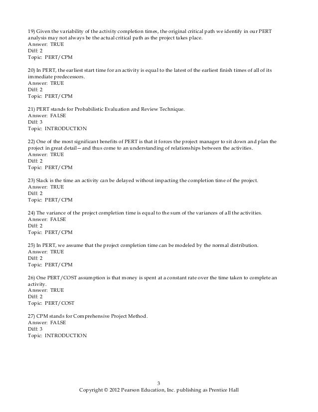 Calculating the slack time for an activity in a PERT chart is very easy and does not involve any complex calculations There are two things that are needed to calculate the slack time ES – the earliest time when an activity can be started;. PERT analysis Draw the network Analyze the paths through the network and find the critical path The length of the critical path is the mean of Project Management PERT/CPM with slack time equal to 0, and tasks connecting these events are on the critical path CPM addresses these cost tradeoffs. Companion Website for Quantitative Analysis for Management (10th Edition) Edit edition Problem 7ST from Chapter 13 In PERT, slack time equals a ES t b LS – ES.