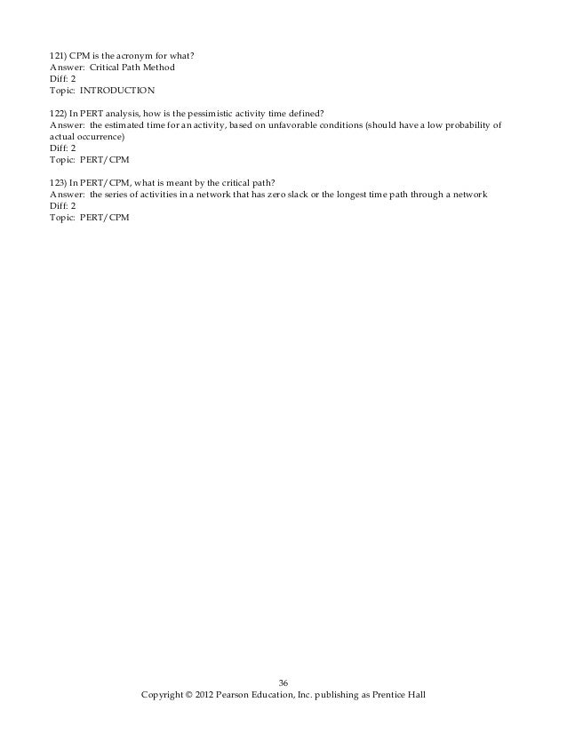 The PERT diagram allows Easy identification of the order of precedence Easy identification of the critical path and thus critical activities Easy determination of slack time A PERT EXAMPLE Suppose a systems analyst is trying to set up a realistic schedule for the data gathering and proposal phases of the systems analysis and design life cycle. Introduction PERT is a network analysis technique used to estimate project duration when there is a high degree of uncertainty about the individual activity duration estimates PERT uses probabilistic time estimates based on using optimistic, most likely, and pessimistic estimates of activity durations The Program Evaluation and Review Technique (PERT) is a widely used method. A critical path can also recover from unanticipated slack if tasks once scheduled to be performed in a series can instead be performed in parallel at the same time That can reduce the critical path, but it usually increases the risks as well.