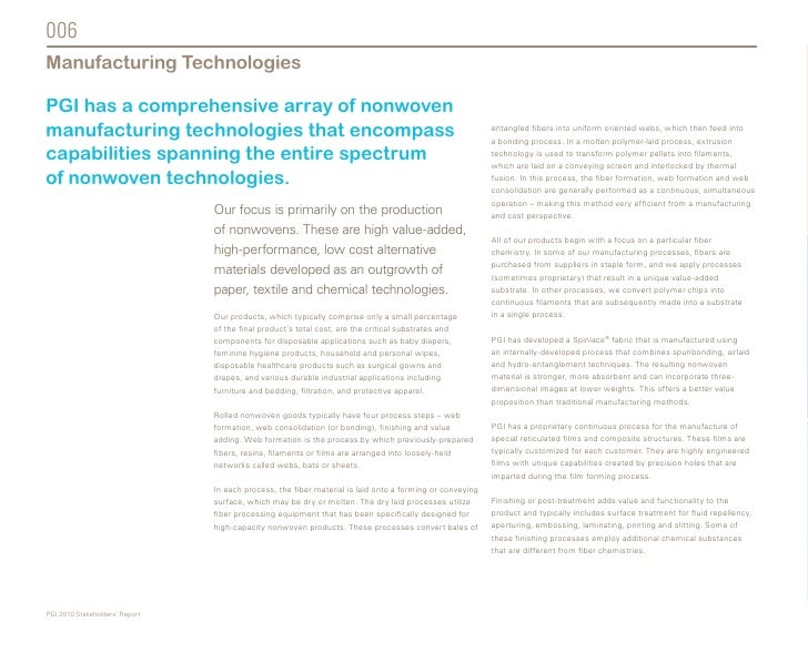 Outside of disposables, PGI has upgraded machinery in Waynesboro, VA, which, like the acquisition of Fiberweb, has increased PGI’s filtration portfolio to include production and development assets for two nanofiber technologies In late 14, Avintiv unveiled the first fruits of this investment, Everist brand filtration media. PGI nonwovens serve a diverse collection of industrial end products used in different market segments industrial composites, consumer composites, filtration, building and horticulture PGI has one of the largest global platforms in the industry, with over 30 employees in 13 manufacturing and converting facilities in nine countries throughout. Business Fashion, accessories and textiles Nonwoven fabrics Textile industry Evaluation.