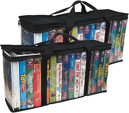 Amazon Com Evelots Vhs Storage Bag Movie Organizer Video Tape Handles Hold 30 No Dust Set 2 Home Kitchen
