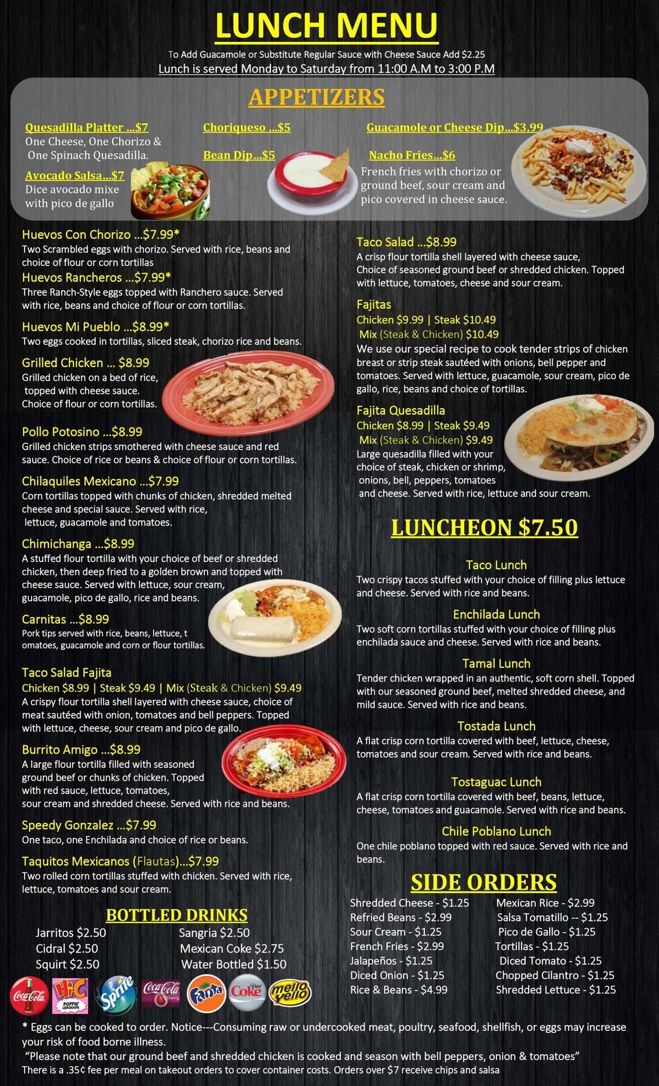 Menu Los Amigos Mexican Restaurant 5 Resort Drive Carlyle Illinois 618 844 5015 Dine In Or Carry Out