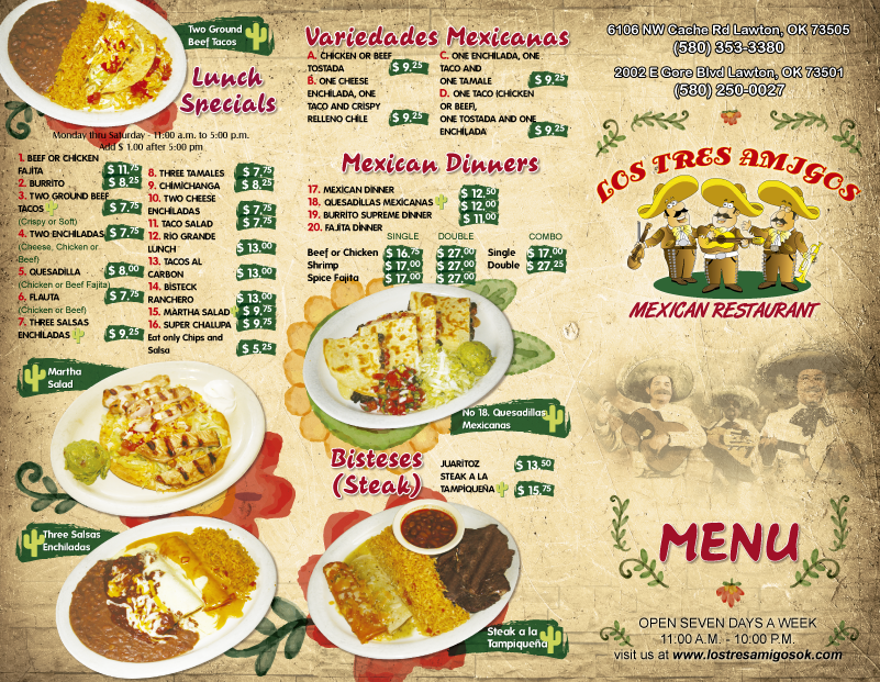 To Go Menu Los Tres Amigos Mexican Restaurant