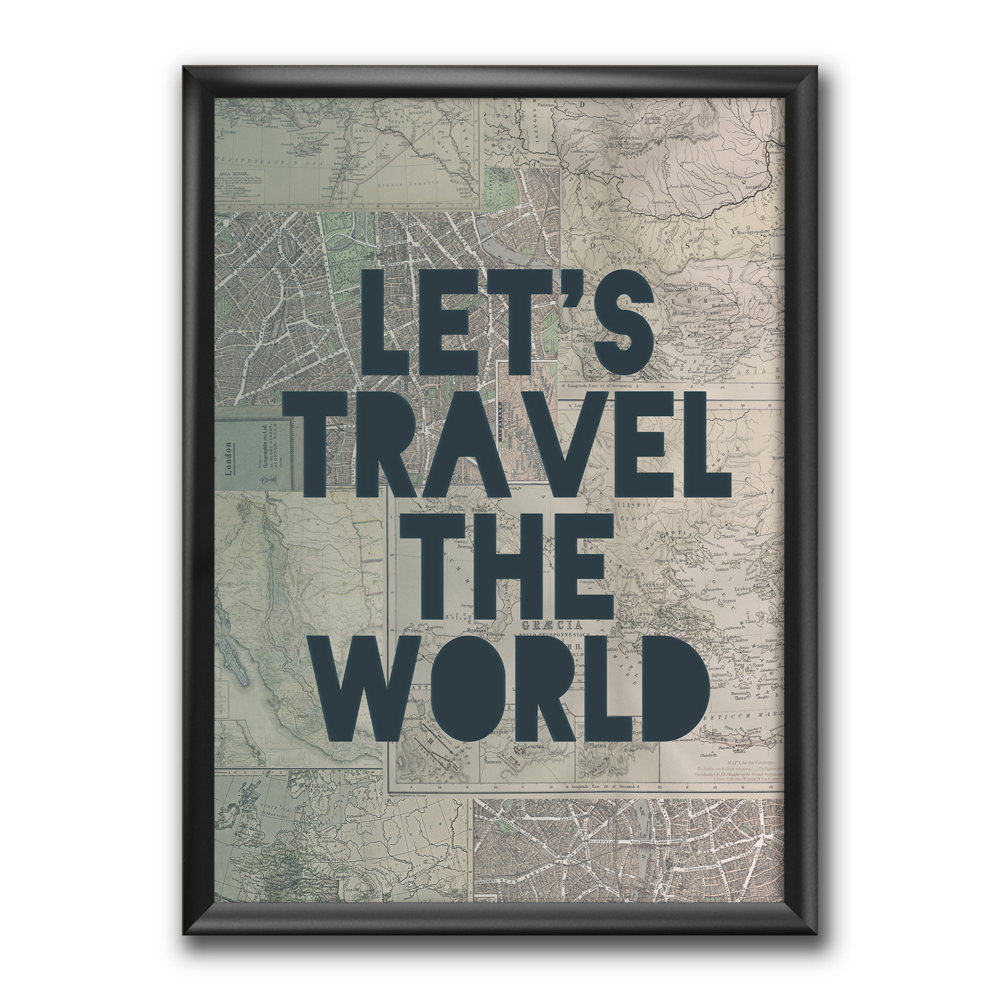 East Urban Home Lets Travel The World Picture Frame Textual Art On Canvas Wayfair