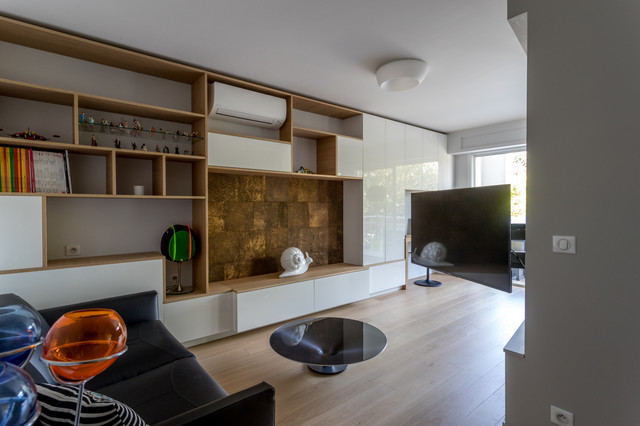 Renovation D Un Appartement De 50m2 A Paris 16 Contemporain Salon Paris Par Gommez Vaez Architecte