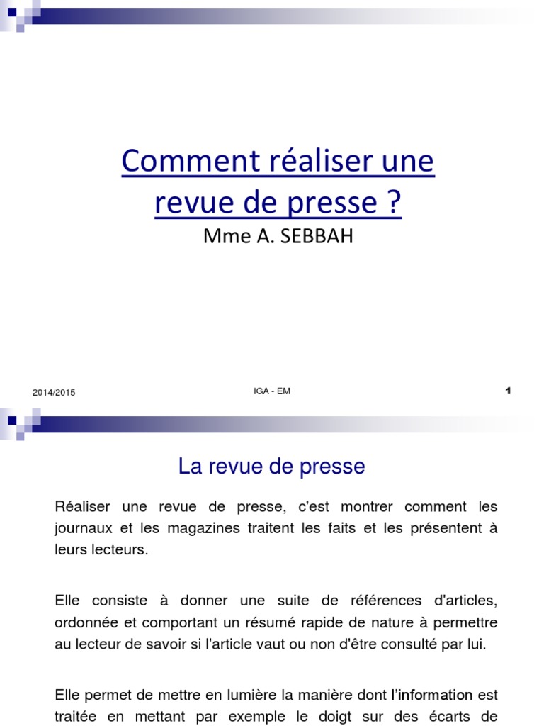 Comment Realiser Une Revue De Presse Mme A Sebbah Informations Edition