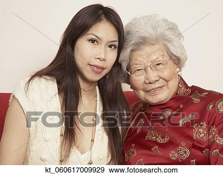 Asiatique Grand Mere A Adulte Petite Fille Sourire Banque De Photo Kt Fotosearch