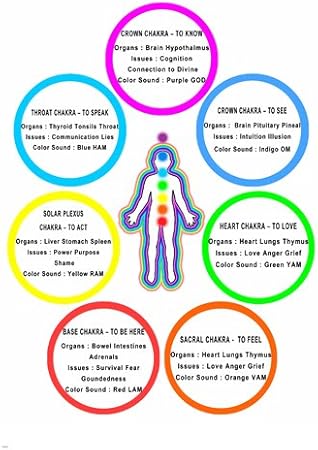 Amazon Com Chakra Chart Poster Colors Meanings Body Parts 24x36 Bright Top Quality Prints Posters Prints
