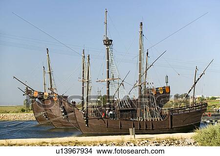 Entiers Taille Fac Simile De Christophe Columbus Bateaux Les Santa Maria Les Pinta Ou Les Nina A Muelle De Las Carabelas Palos De La Frontera La Rabida Les Huelva Provence De Andalucia