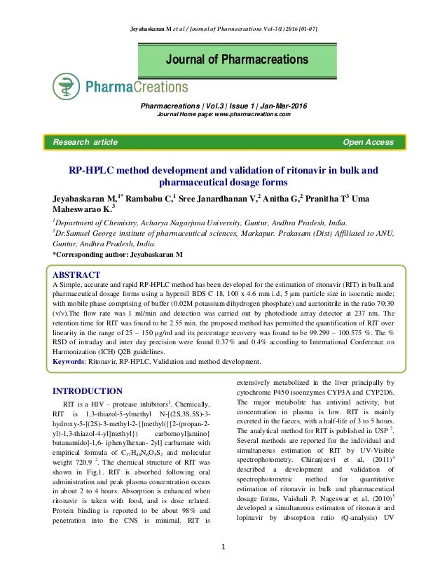 Rp Hplc Method Development And Validation Of Ritonavir In Bulk And Ph