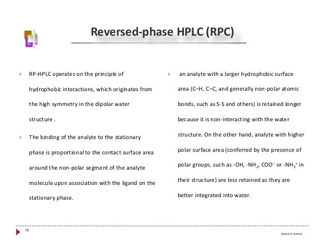 For example in ReversePhase High Performance Liquid Chromatography by using 250 cm length x 46 mm Inner Diameter, and 5 micras C18 columns, and flow rates around 05 ml/min of solvents like. HPLC Characteristics •Columns have small internal diameters (210 mm) ultraperformance liquid chromatography–electrospray (UPLC) technologies and • HILIC offer a good alternative to RP chromatography for the analysis of highly polar metabolites such as carbohydrates, their phosphorylated derivatives, and glycolytic. What is the difference between Reversed Phase (RP) HPLC and hydrophobic interaction chromatography (HIC)?.