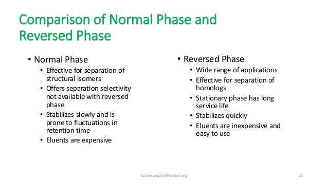 Over the past 10 or so years reversedphase flash chromatography use has increased dramatically Likewise, reversedphase preparative HPLC (RP pHPLC) use has also increased Chemists need to know when to choose between the speed and low solvent use of flash column chromatography and the ultimate purification of RP pHPLC. Effect of Temperature on RPHPLC Retention 15 Gradient vs Isocratic Elution 15 RPLC/MS of Biomolecules 16 Column Selection for RPLC/MS Column ID 16 Maintaining Constant Linear Velocity with Changing Column ID 17 Electrospray Ionization (ESI) 17 Column Packing Materials for RPLC/MS 18 Column Stability 19 Mobile Phase for RPLC/MS Ionic. This typically ensures the proper interaction of analytes with the nonpolar, hydrophobic particle surface A C18–bonded silica sometimes called ODS is the most popular type of reversedphase HPLC packing Table C presents a summary of the phase characteristics for the two principal HPLC separation modes based upon polarity.