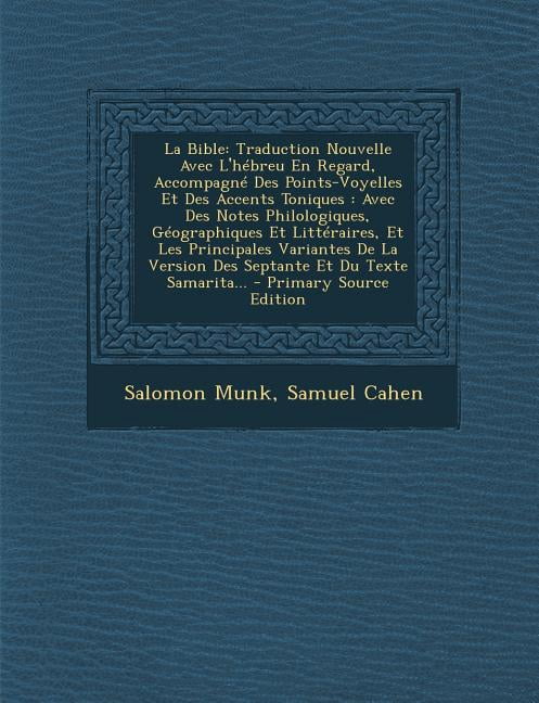 La Bible Traduction Nouvelle Avec L Hebreu En Regard Accompagne Des Points Voyelles Et Des Accen Book By Samuel Cahen Paperback Www Chapters Indigo Ca