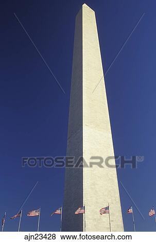Washington Monument Washington Dc District Of Columbia The Washington Monument Surrounded By American Flags Stands Erect Against A Clear Blue Sky In Washington D C Stock Photo Ajn Fotosearch