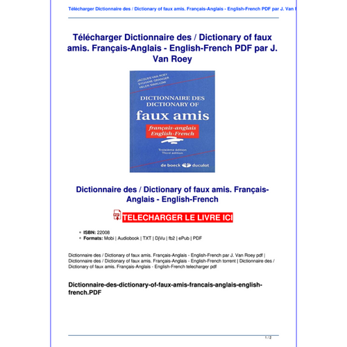 Telecharger Dictionnaire Des Dictionary Of Faux Amis Francais Anglais English French Pdf Par