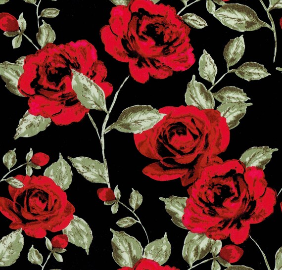 Fabric Black Si Senorita By The Yard Etsy Red Roses Wallpaper Black Aesthetic Wallpaper Rose Wallpaper