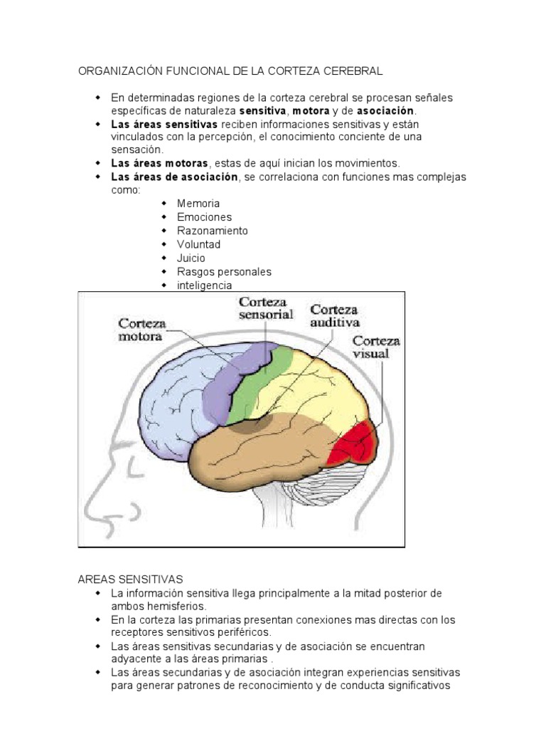 Apunte Organizacion Funcional De La Corteza Cerebral Fisiologia Kinesiologia Y Fisioterapia Unc Filadd