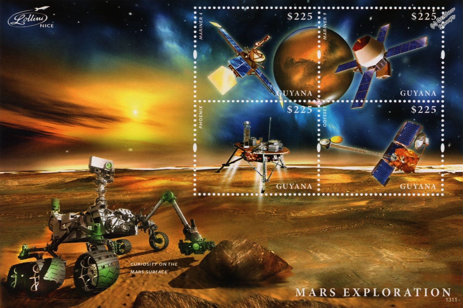 Mars Exploration Curiosity Phoenix Odyssey Mariner Space Stamp Sheet 13 Guyana Ebay