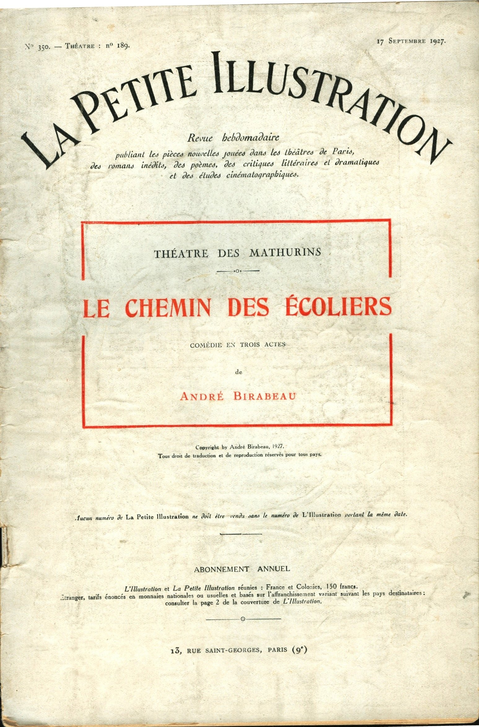 La Petite Illustration No 350 Theatre No 1 17 Septembre 1927 Le Chemin Des Ecoliers Comedie En Trois Actes French Edition Andre Birabeau Robert De Beauplan Amazon Com Books