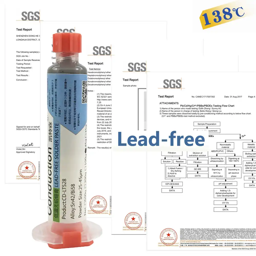 Lead Free Solder Paste Sn42bi58led Low Melting Point 138 Degrees Low Temperature Medium Temperature High Temperature