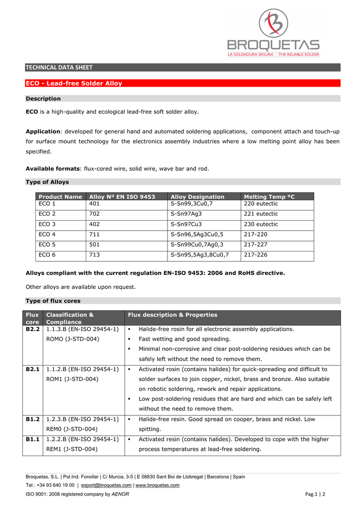 Technical Data Sheet Eco Lead Free Solder Alloy Manualzz