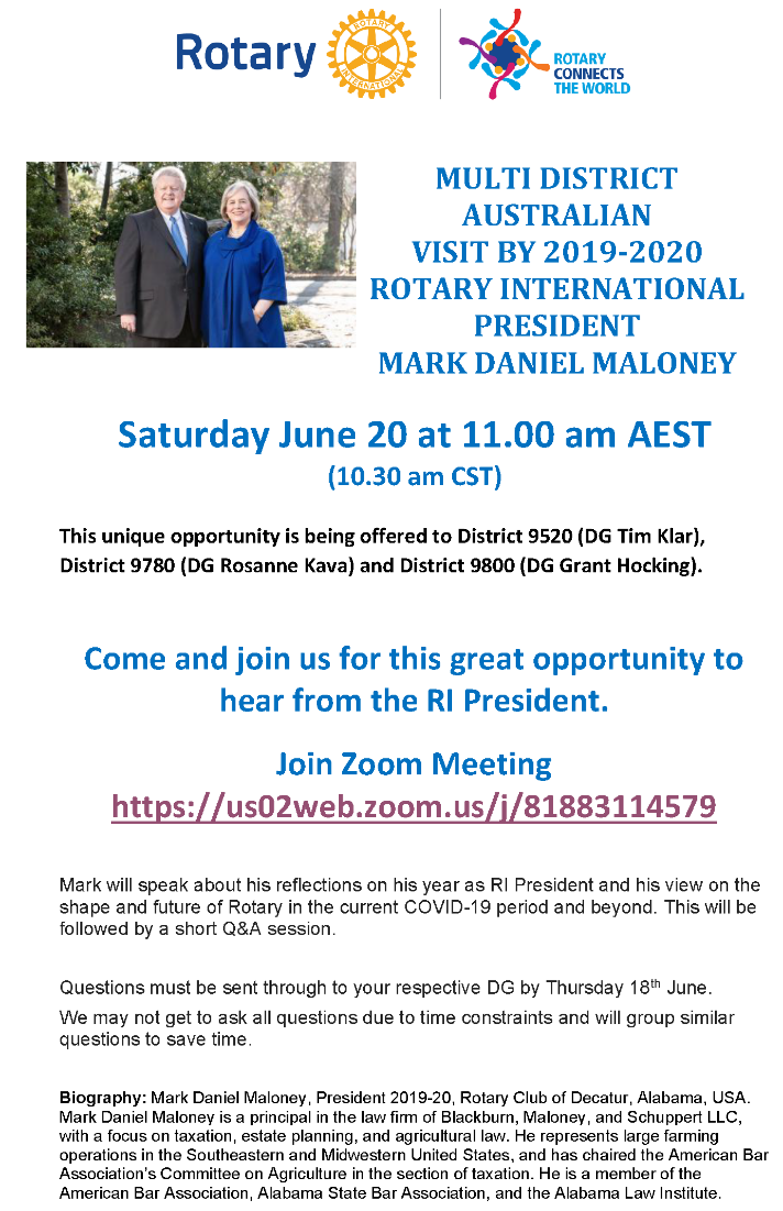Message From Rotary International President Mark Maloney Concerning Covid 19 Rotary Oceania