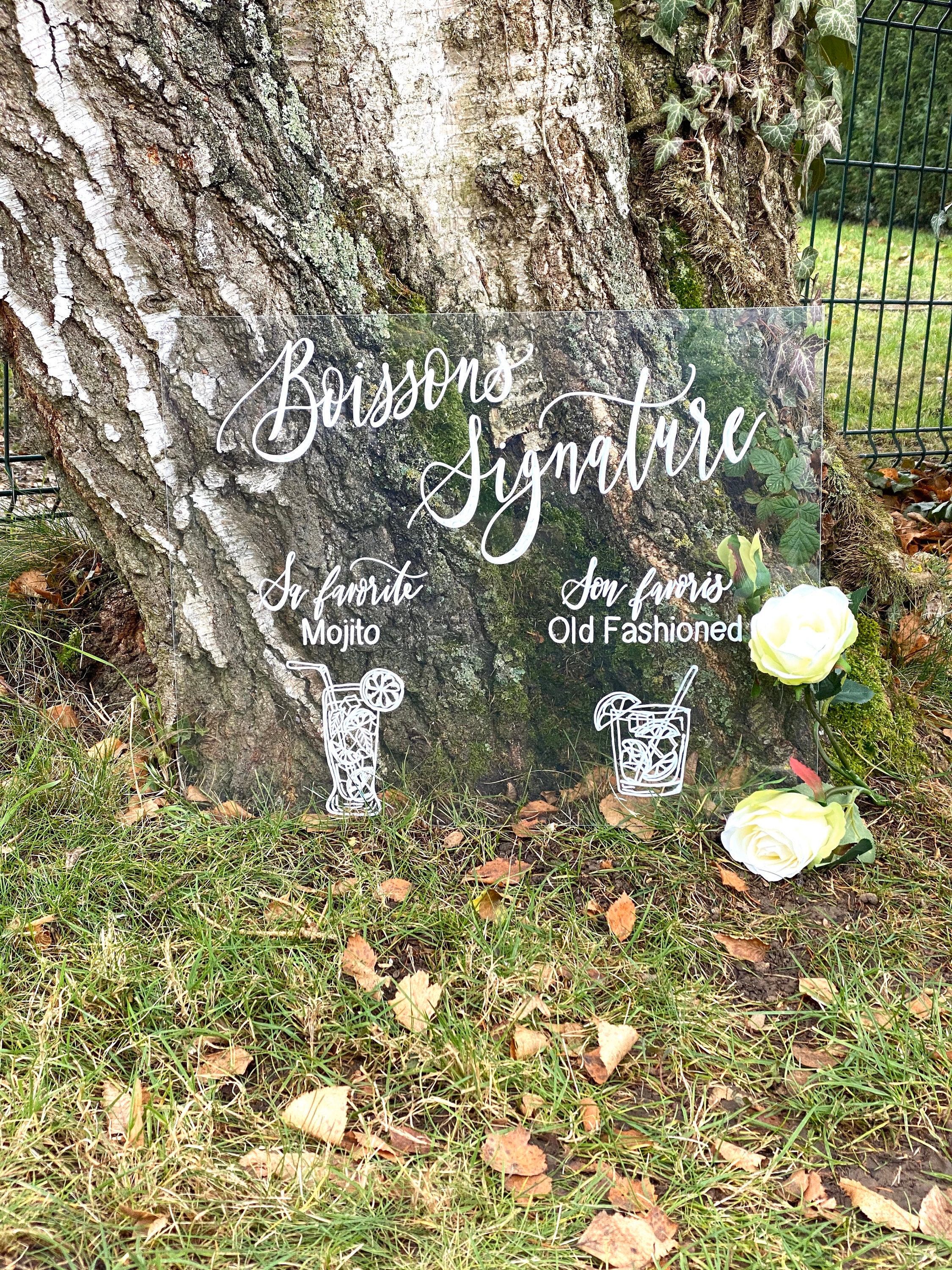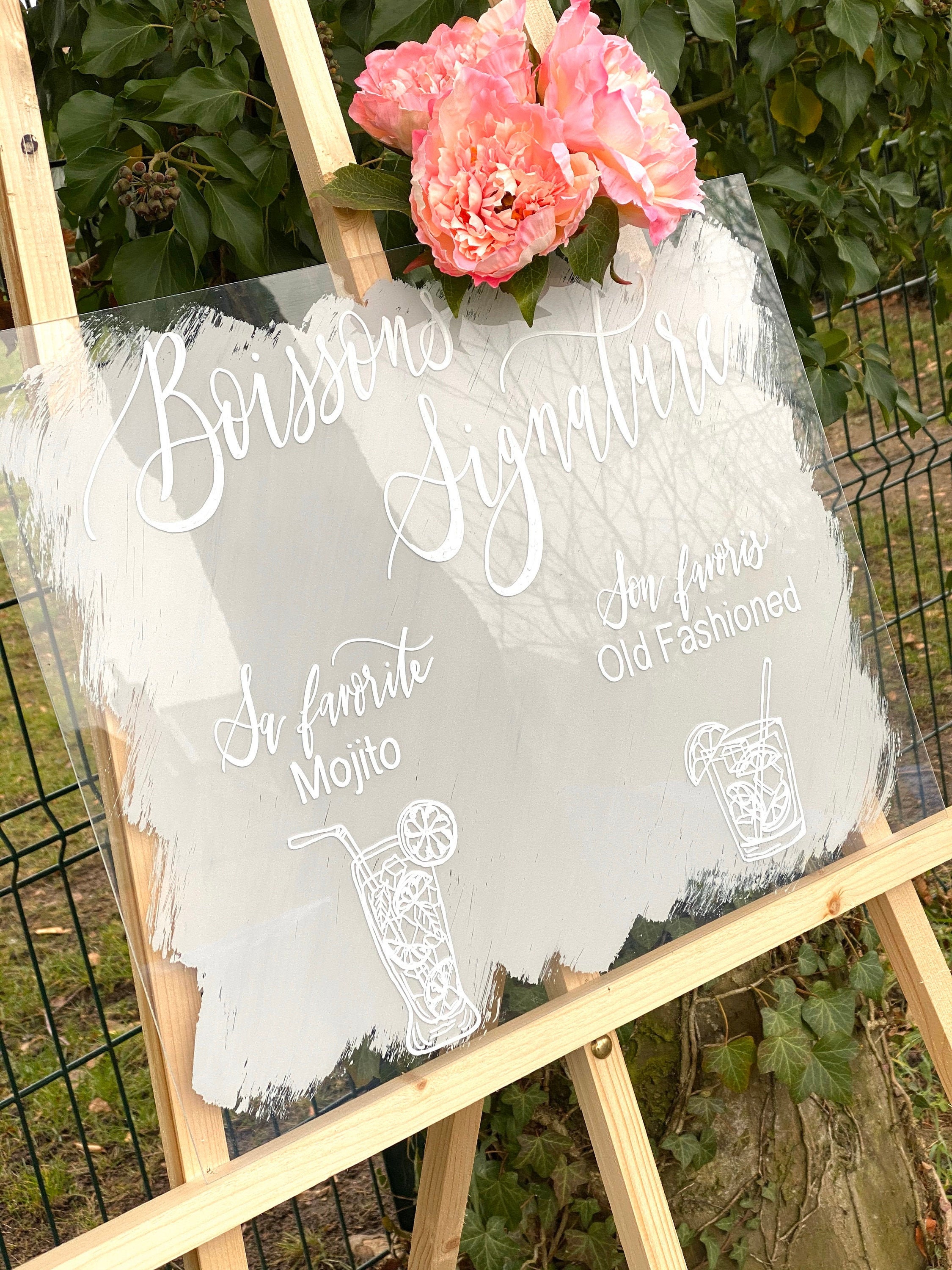 Panneau Boissons Signature Mariage En Acrylique Verso Peint Panneau Boissons Noms Des Boissons Au Choix Bar Ceremonie