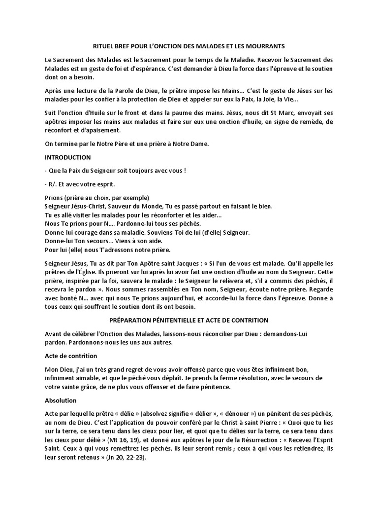 Rituel Bref Pour L Onction Des Malades Et Les Mourants Notre Pere Pardon