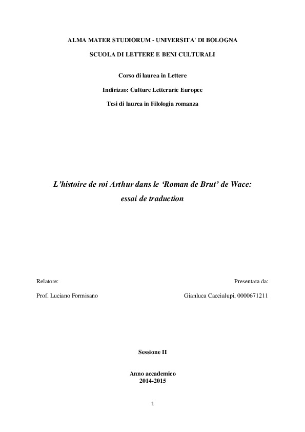 Pdf L Histoire De Roi Arthur Dans Le Roman De Brut De Wace Essai De Traduction Gianluca Caccialupi Academia Edu