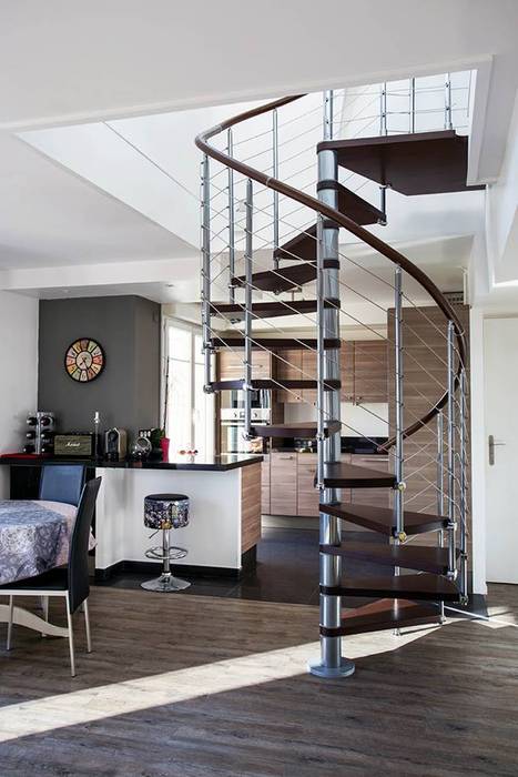 Photo Dh28 Spir Deco Caisson Escalier Interieur Contemporain Helicoidale En Metal Et Bois Installe Dans Un Appartement En Duplex Escaliers Decors