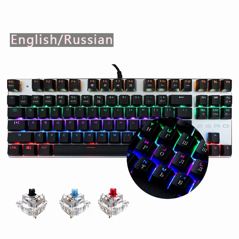 Moi Aussi Clavier Mecanique De Jeu Original 87 Touches Clavier Filaire Bleu Rouge Noir Commutateur Clavier Retro Eclaire Russe Espagnol Hebreu Aliexpress