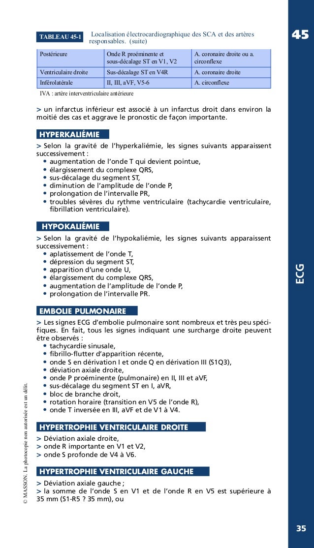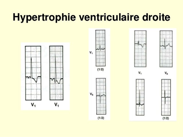 Sus décalage indique ischémie antérieure et inversement. Hypertrophie ventriculaire droite translation in French English Reverso dictionary, see also 'hypertrophié',hypermétrope',hypothermie',hyper', examples, definition, conjugation. Toute pathologie qui pourrait provoquer une hausse de la pression dans les cavités droites peut également provoquer une hypertrophie auriculaire droite Maladie pulmonaire Bien qu'elles ne soient pas systématiquement présentes, il n'est pas rare de trouver des ondes P hautes sur l'ECG de patients souffrant de bronchopneumopathie chronique obstructive (BPCO) 3.
